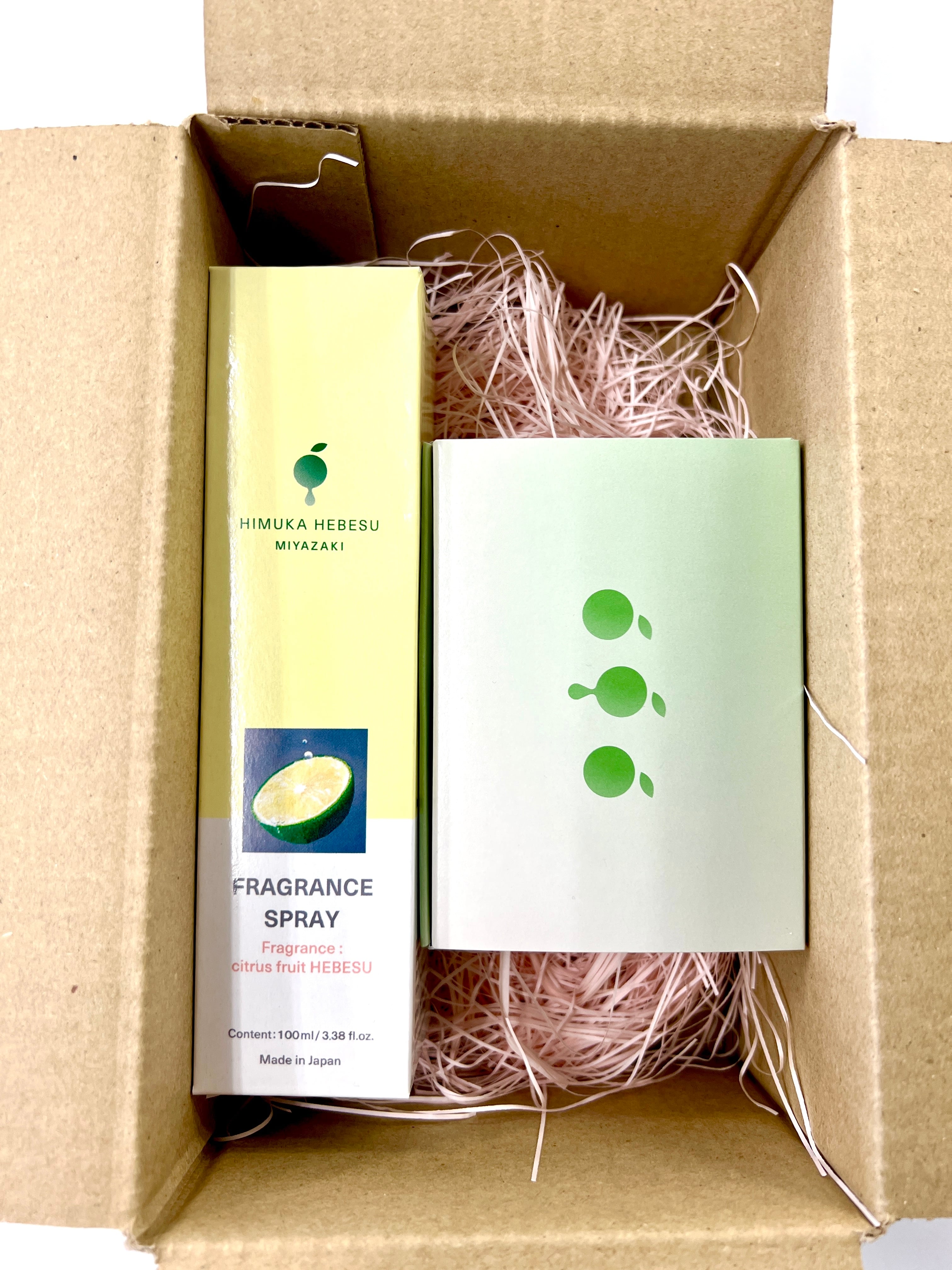 内容:へべすアロマオイル(精油)3ml×1本、へべすアロマフレグランススプレー100ml×1本